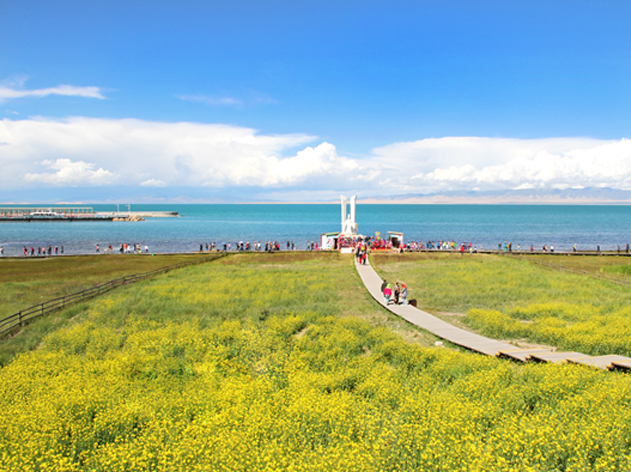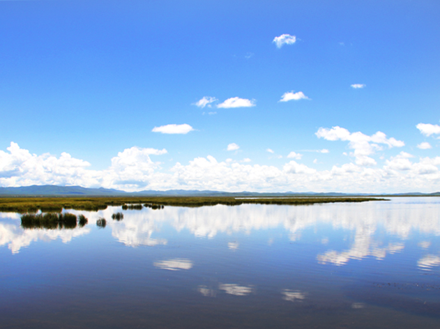 蓝蓝的天空白色的云朵,与蔚蓝色的湖水交相辉映,