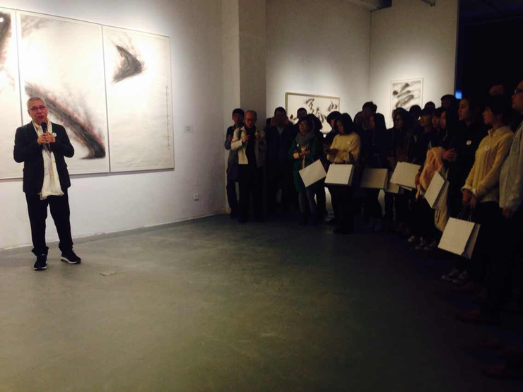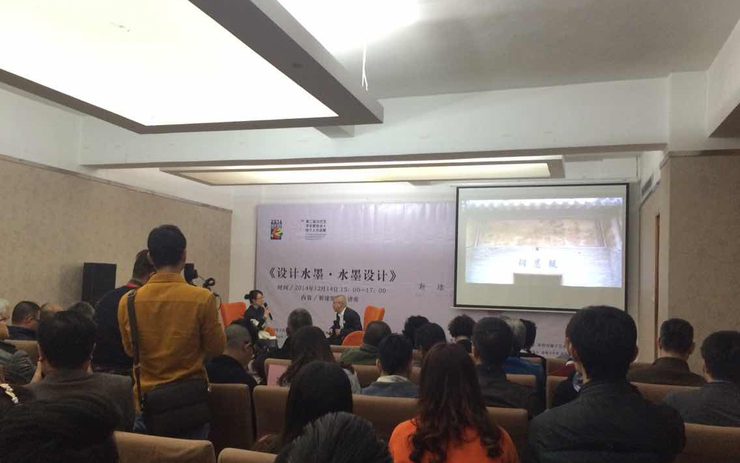 活动当天,靳埭强亲自为画展揭幕,并现场泼墨,随后其一场“设计水墨·水墨设计”主题讲座,回顾了其个人艺术启蒙,水墨画作学习,到步入设计界的过程,介绍了其艺术演化的全程。